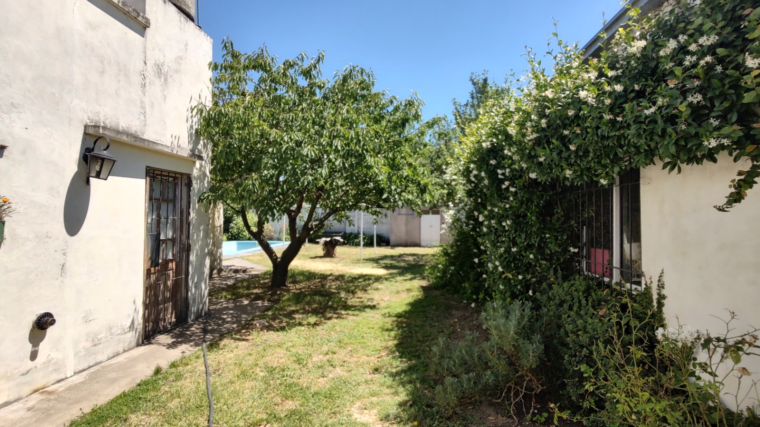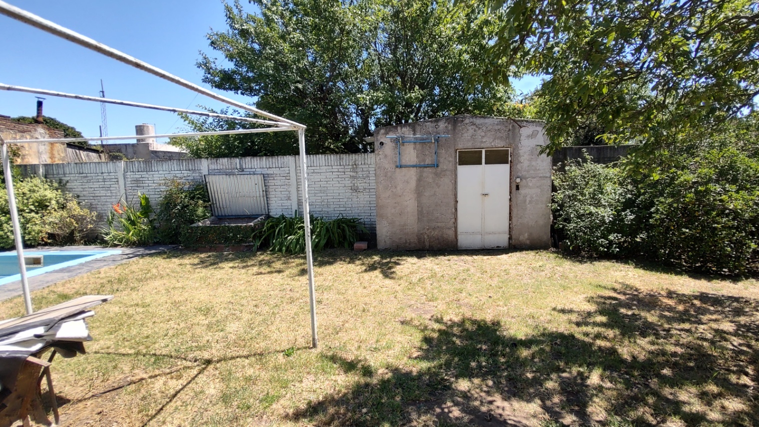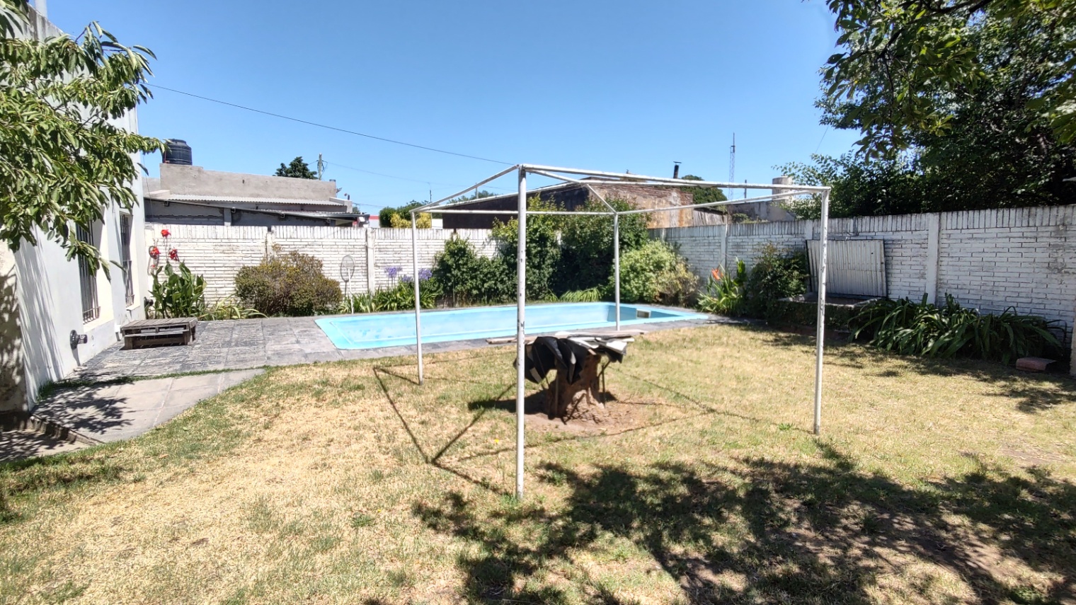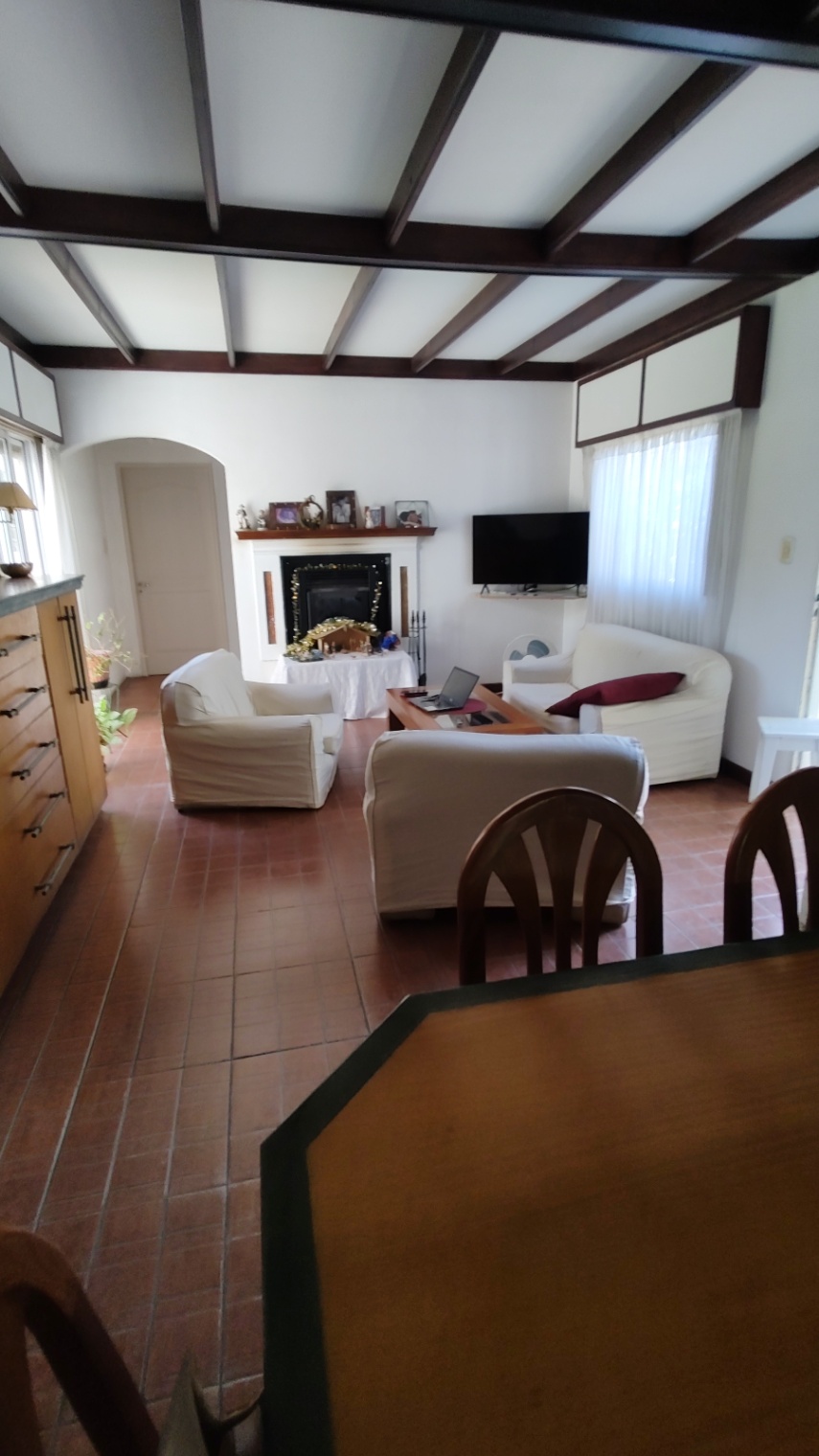 Excelente vivienda con todas las comodidades, con un lote de 17,80 mts. de frente, se compone de living-comedor con estufa-hogar, cocina-comedor, pasillo distribución que distribuye a 3 dormitorios, uno de ellos con ambiente de escritorio, 2 baños (uno con bañera, otro con ducha), quincho amplio, más ambiente muy amplio contiguo hoy lugar de trabajo que puede incorporarse al quincho, el cual es con cocina y amoblamiento completo conectado a la vivienda. Piscina . Patio amplio verde.