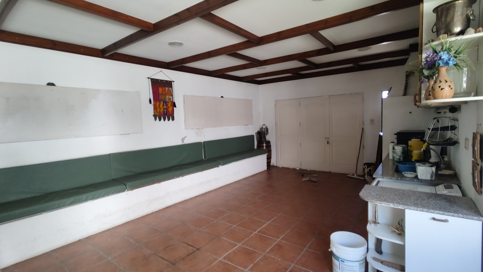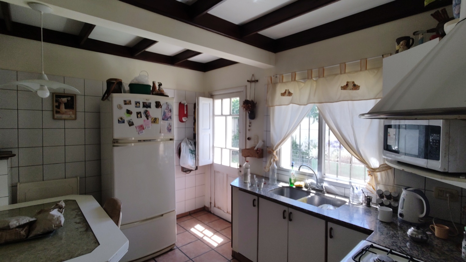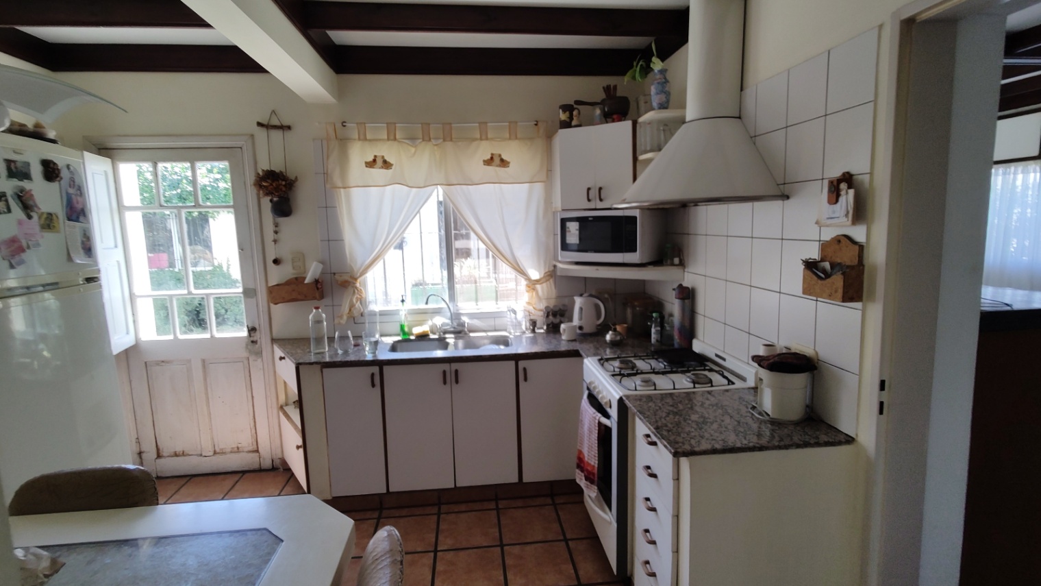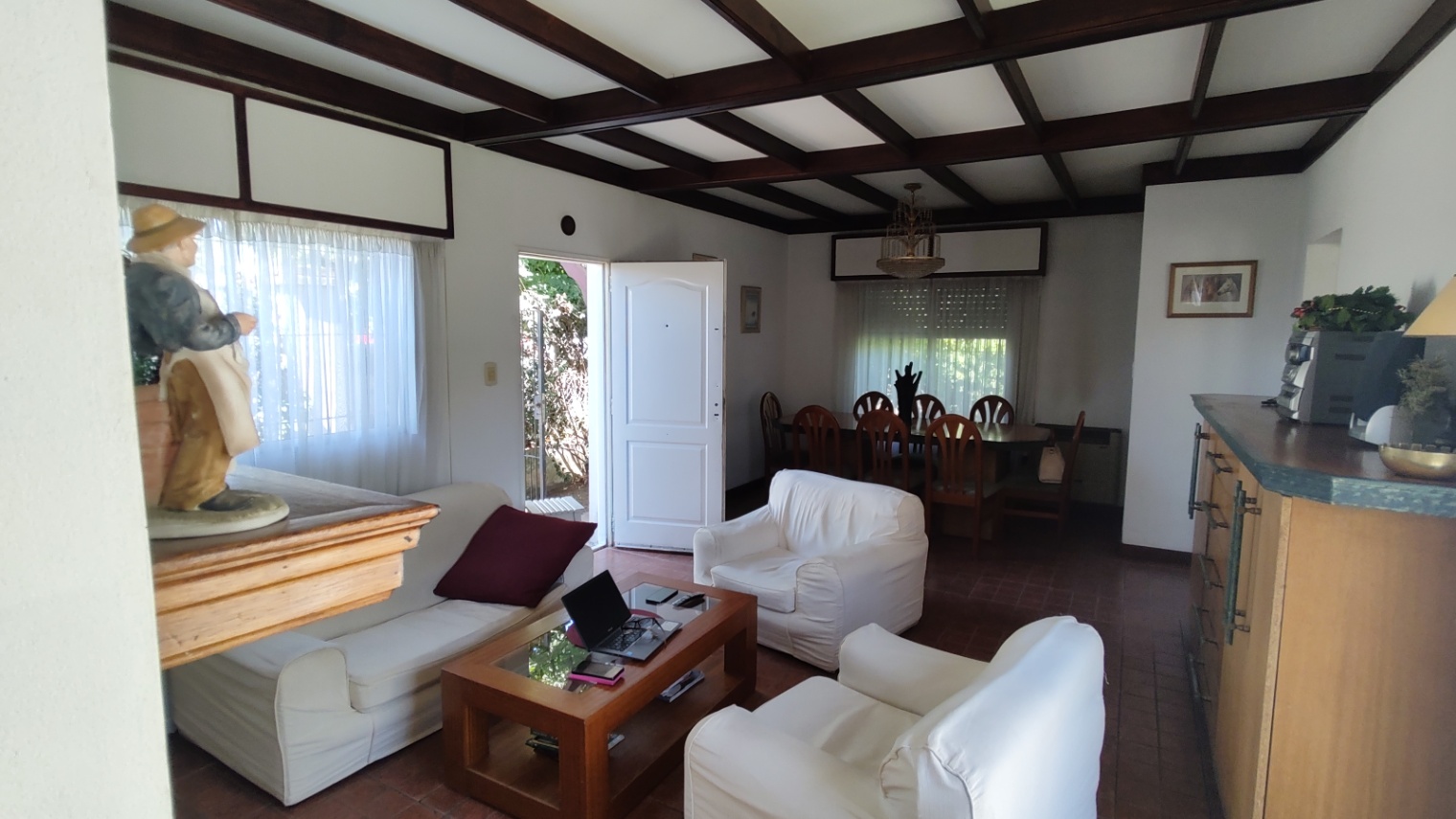 Excelente vivienda con todas las comodidades, con un lote de 17,80 mts. de frente, se compone de living-comedor con estufa-hogar, cocina-comedor, pasillo distribución que distribuye a 3 dormitorios, uno de ellos con ambiente de escritorio, 2 baños (uno con bañera, otro con ducha), quincho amplio, más ambiente muy amplio contiguo hoy lugar de trabajo que puede incorporarse al quincho, el cual es con cocina y amoblamiento completo conectado a la vivienda. Piscina . Patio amplio verde.