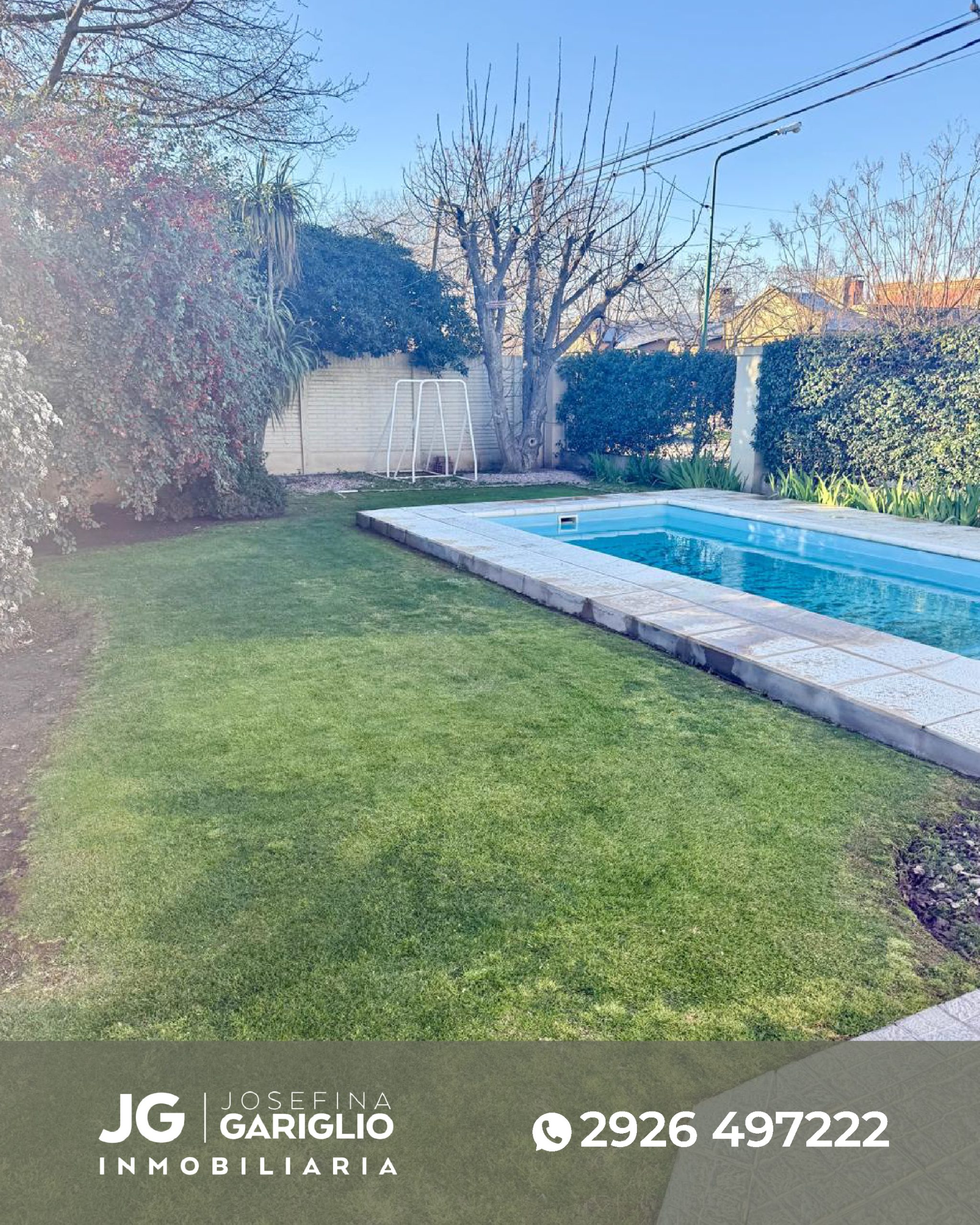 – Jardín con pileta + quincho/garage con entrada independiente