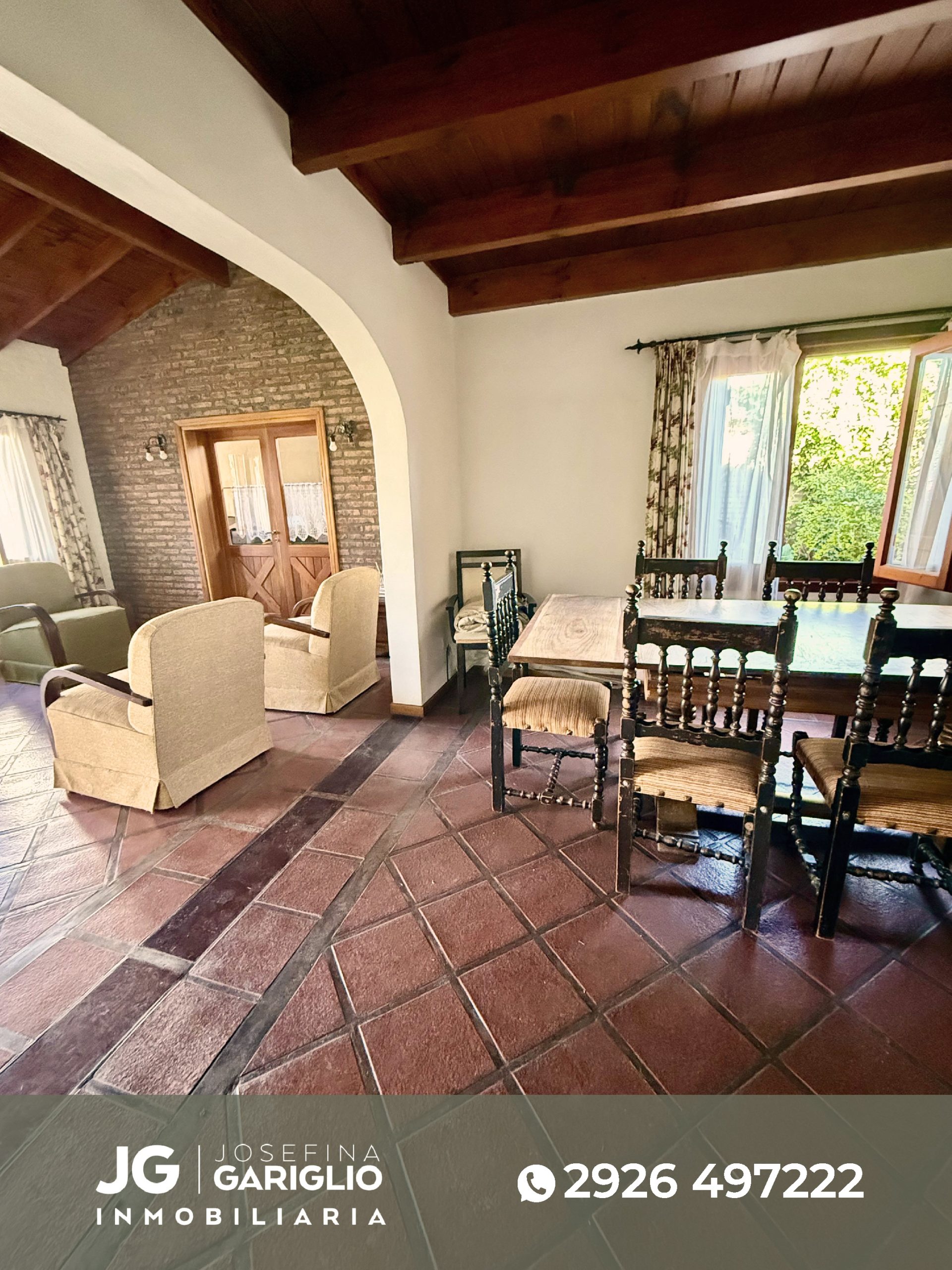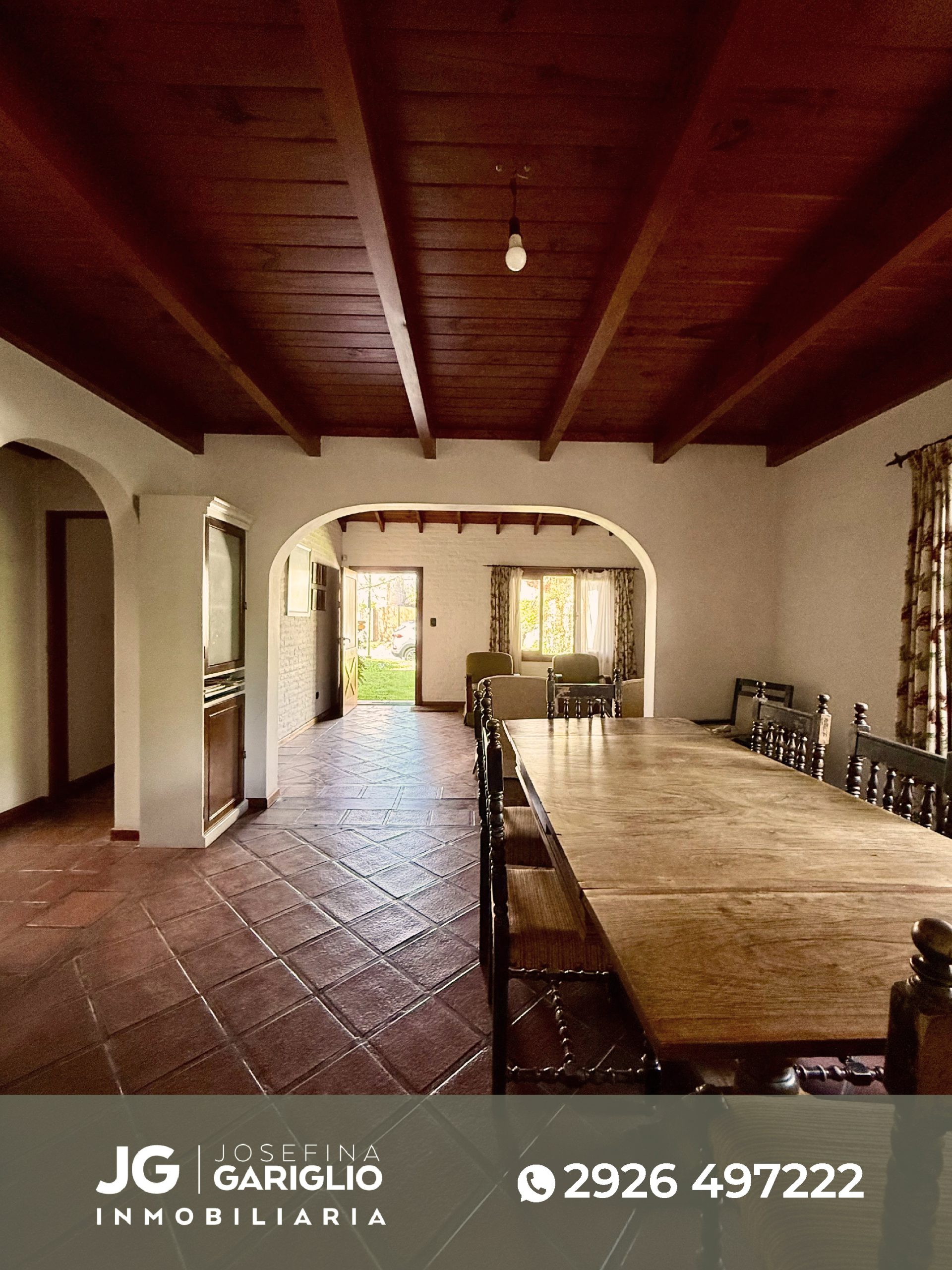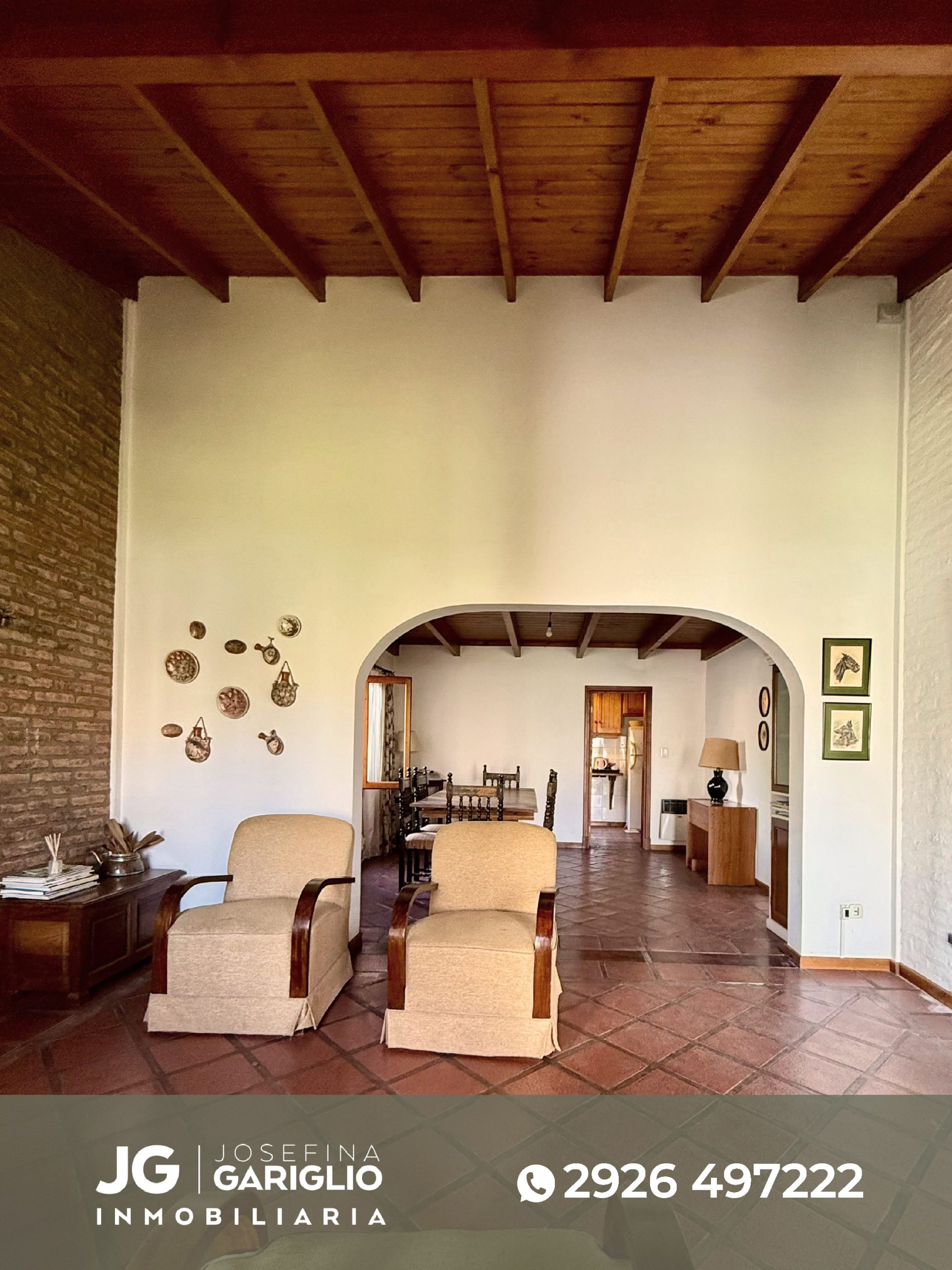 El living–comedor se conecta mediante puerta doble de madera a un amplio garaje con fogón y toilette, con capacidad para dos vehículos y portón automático.