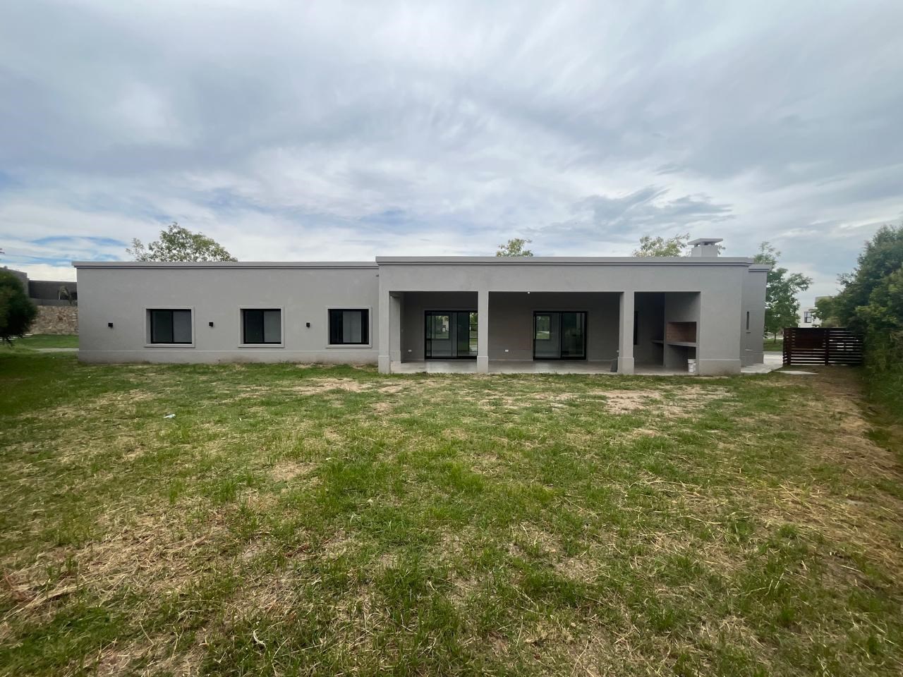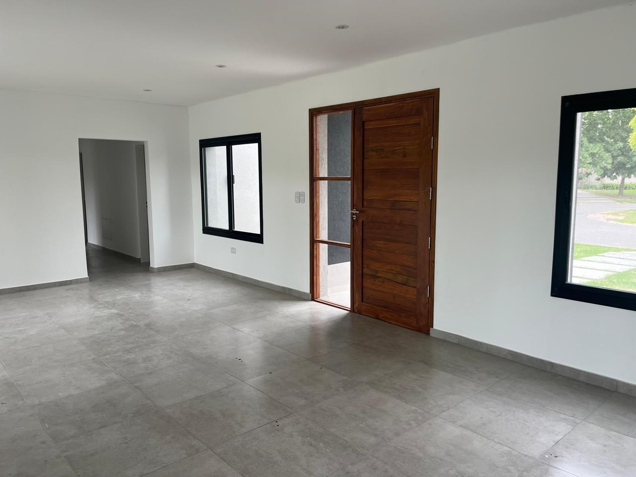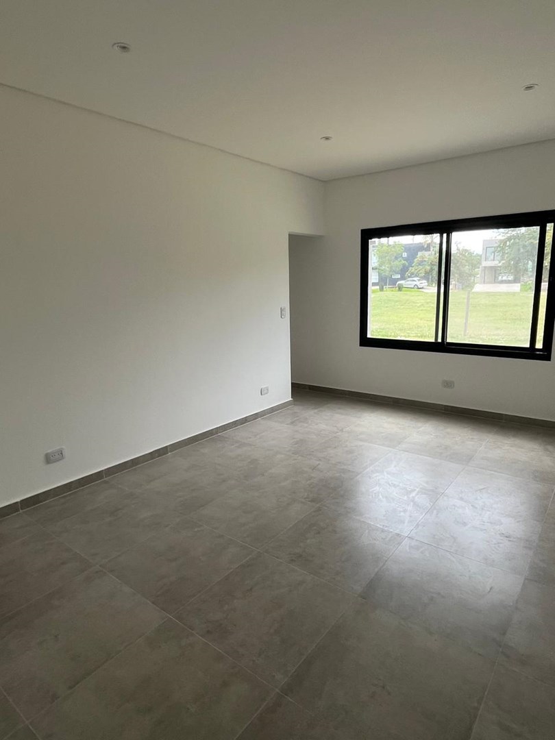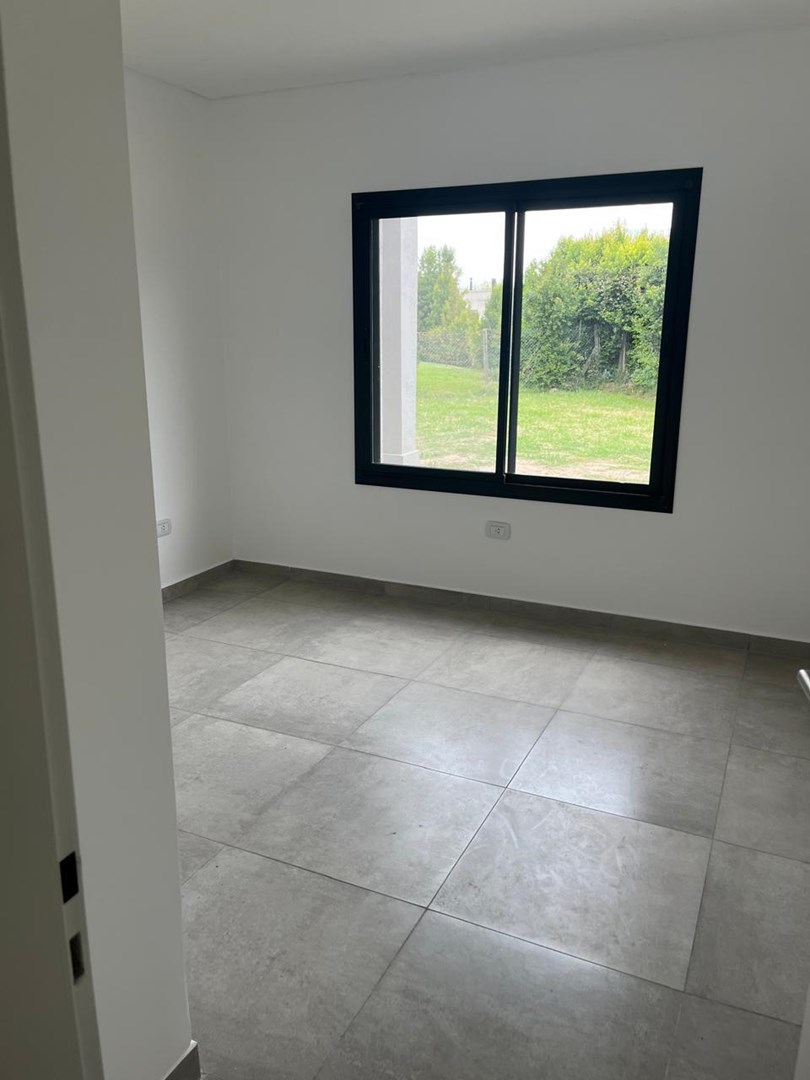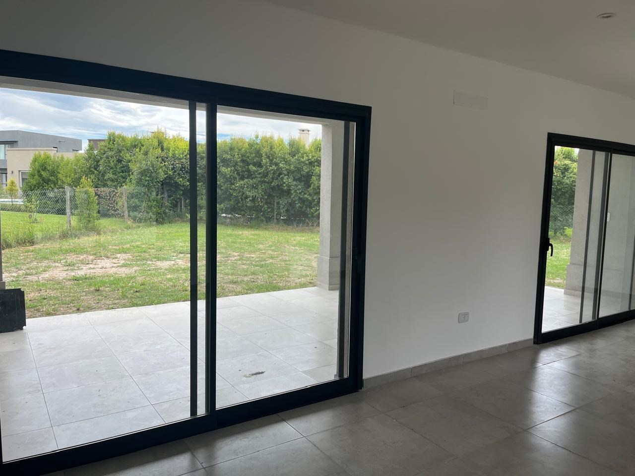 El Cantón Casa en planta baja sobre lote interno, en barrio Islas, El Cantón. Toda en planta baja, cuenta con tres habitaciones, una de las cuales es en suite con vestidor, y las otras dos comparten un baño. Toilette. Piscina prevista en el plano, se puede hacer por el mismo vendedor, pagando aparte (USD 10.000.-). Aberturas de DVH Pisos de porcelanato Losa radiante con control de temperatura instalado Calder dual. Aberturas negras, estilo moderno, con colores en gris, blanco y negro. No es apta crédito.