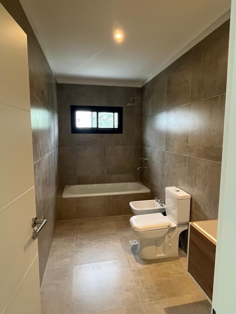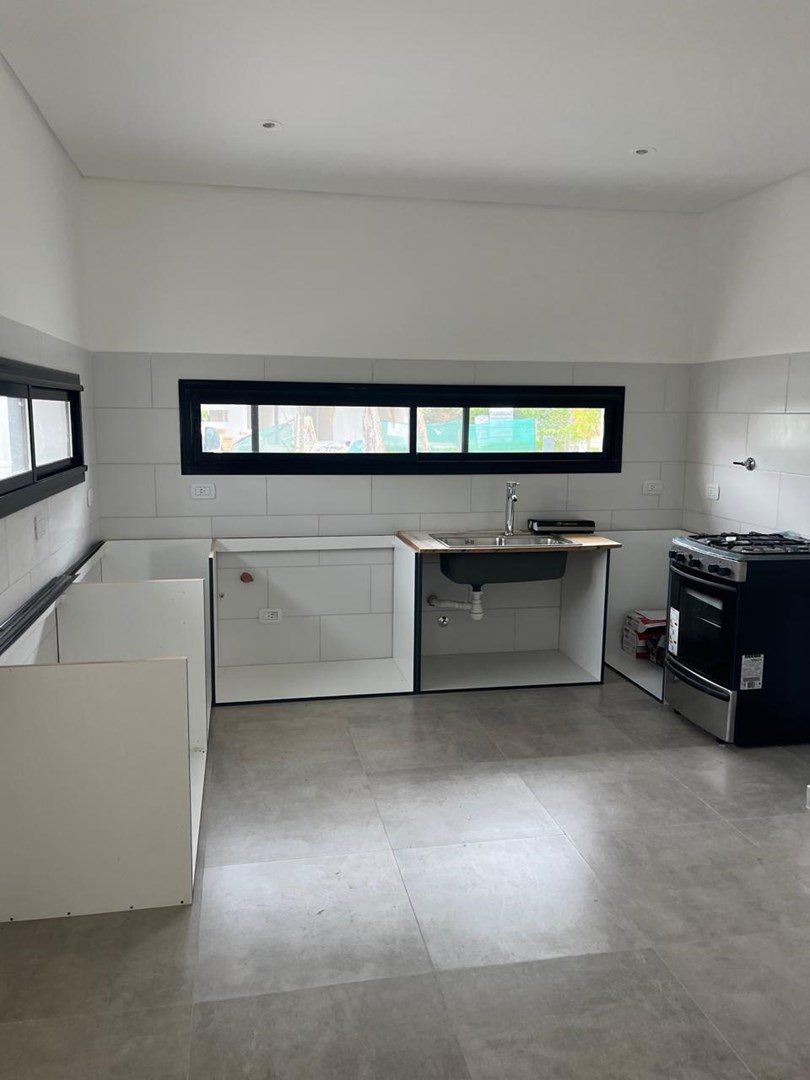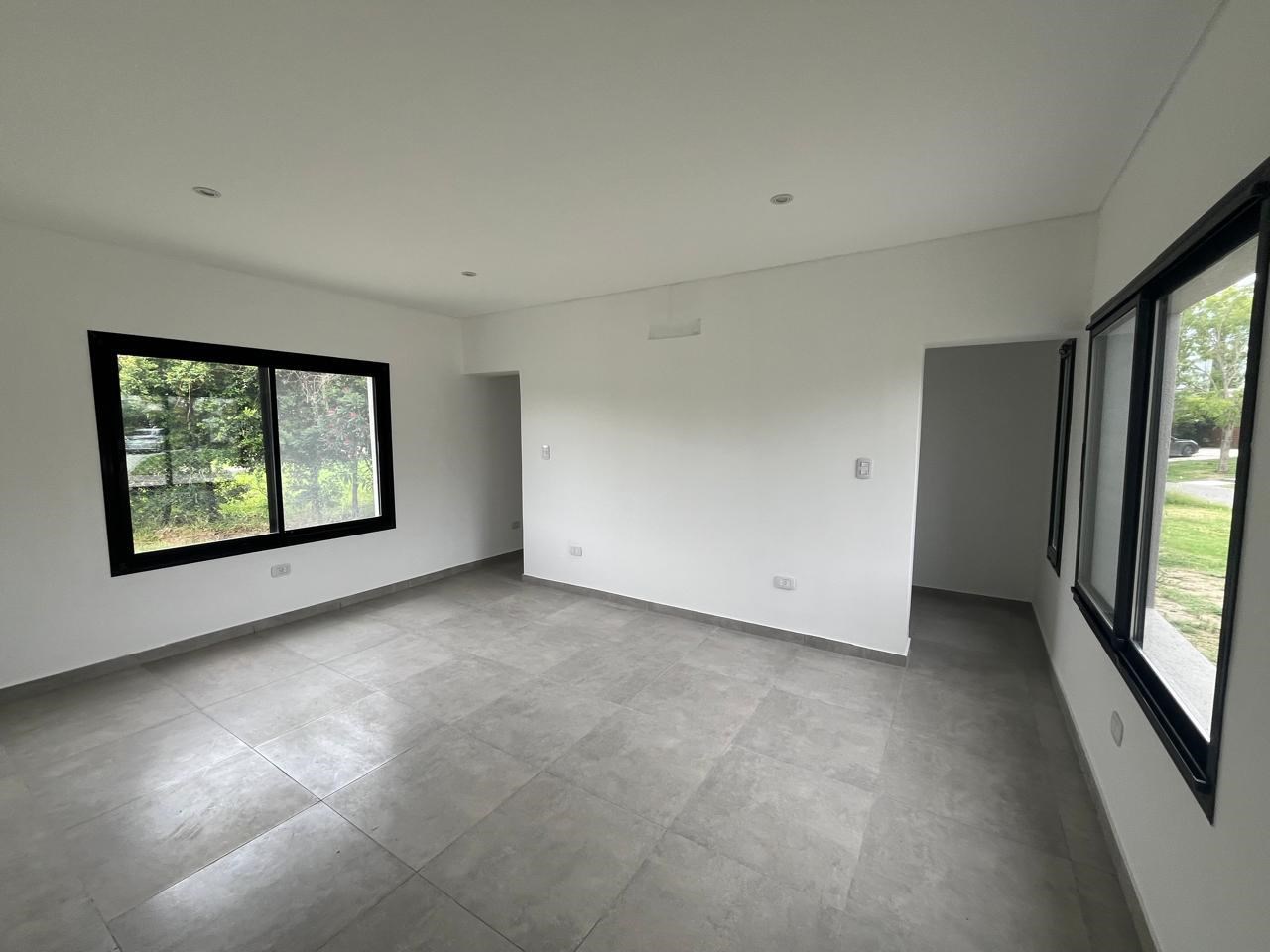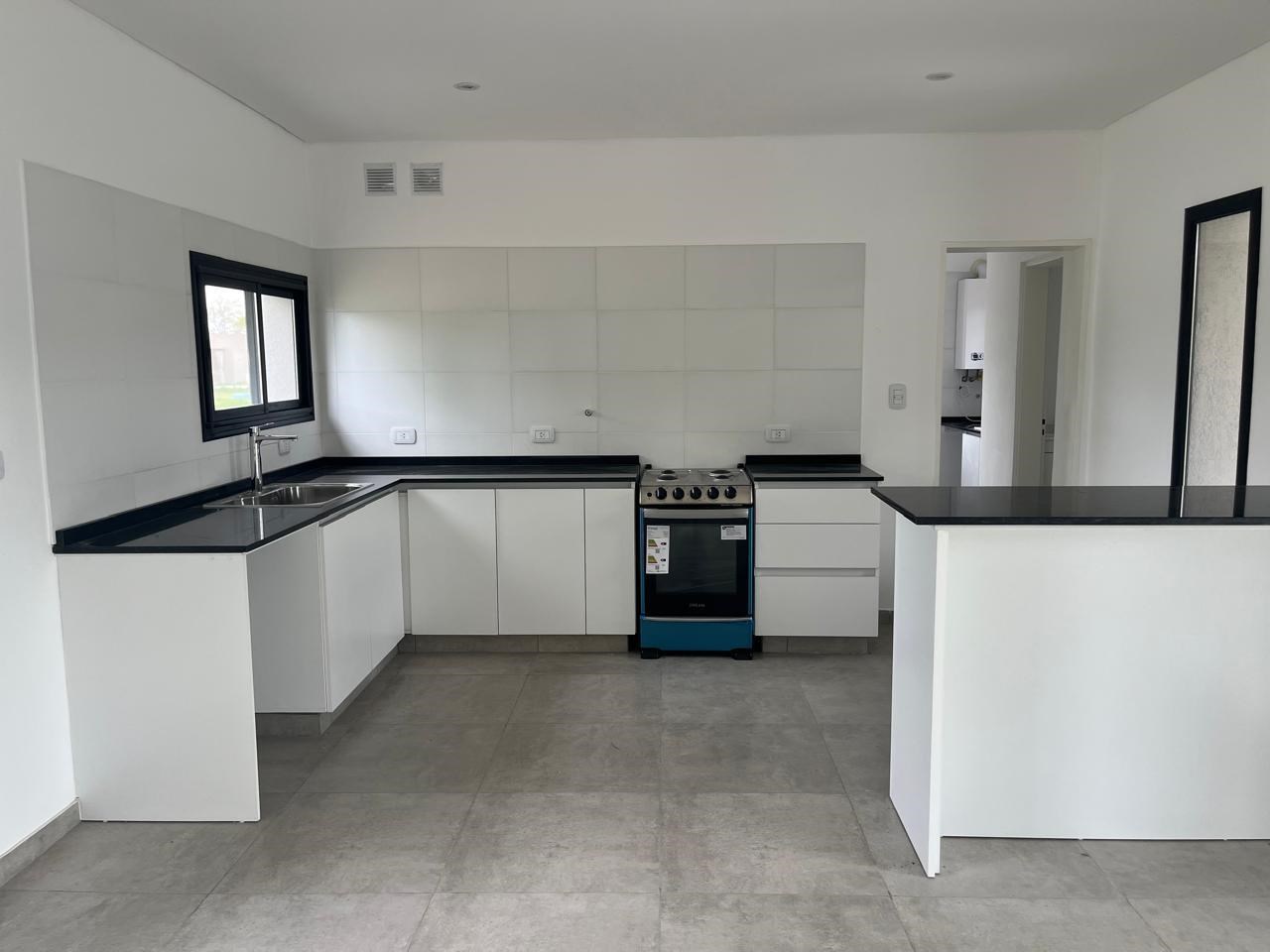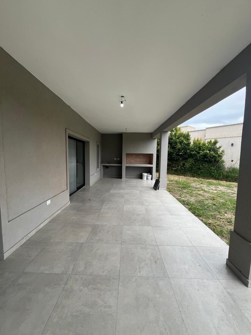 El Cantón Casa en planta baja sobre lote interno, en barrio Islas, El Cantón. Toda en planta baja, cuenta con tres habitaciones, una de las cuales es en suite con vestidor, y las otras dos comparten un baño. Toilette. Piscina prevista en el plano, se puede hacer por el mismo vendedor, pagando aparte (USD 10.000.-). Aberturas de DVH Pisos de porcelanato Losa radiante con control de temperatura instalado Calder dual. Aberturas negras, estilo moderno, con colores en gris, blanco y negro. No es apta crédito.