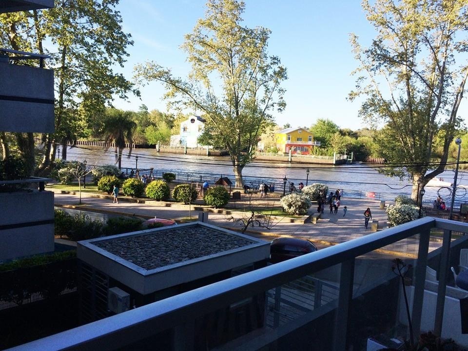 Excelente depto de dos ambientes, con dos balcones con vista al rìo, ubicado en lateral de edificio rotado para lograr las mejores vistas. Luminoso y canchero, ideal para jovenes parejas o personas que quieren vivir casi en el Delta, con los beneficios de estar en el continente. En el barrio La Isla de Tigre residencial, este depto tiene cocina integrada y baño completo. Cochera cubierta. Edificio con pileta soleada todo el día, quincho y parrilla. Solarium. Laundry. Bajas Expensas!