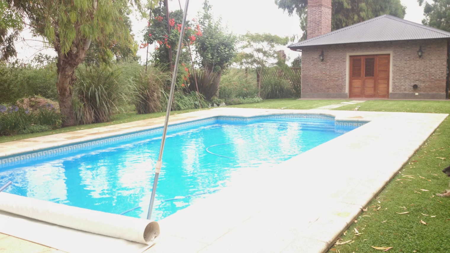 Quincho amplio con fogón, galpón. Parque con riego por aspersión, piscina climatizada con climatización solar de 5 x 9 con solarium y hasta 2,20 de profundidad